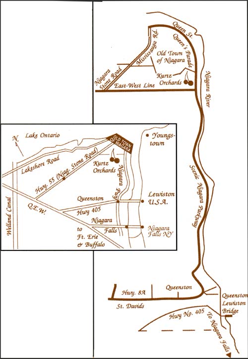 Location: Located at 16006 Niagara Parkway, on the corner of East-West Line, about 12 minutes along the escarpment from the Falls. Click here for map