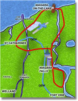You will fly over one of the major wine regions in Ontario. Nestled between the shore of Lake Ontario and the Niagara escarpment, this area has a unique microclimate which moderates both the summer heat and winter cold and has the ideal combination of sandy loam, gravel and clay soils to provide proper drainage and acidity to grow the vitis vinifera vines necessary to produce world class wines. Niagara's vineyards are situated along the 43 parallel similar to the famous wine regions of France, Italy, California and Spain. Over 14,000 acres are cultivated to supply juice for the 48 wineries located here.